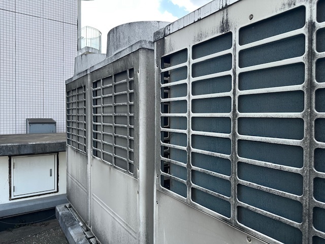 先日現地調査を行った都内の病院のエアコン室外機です。