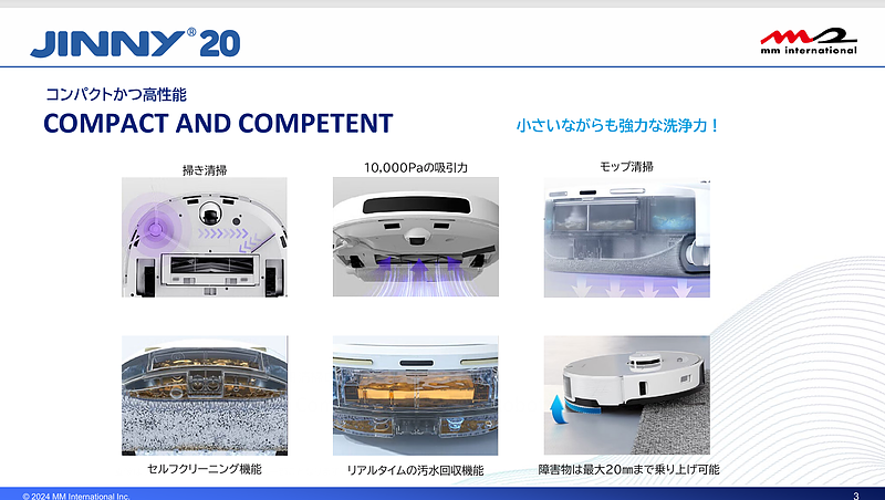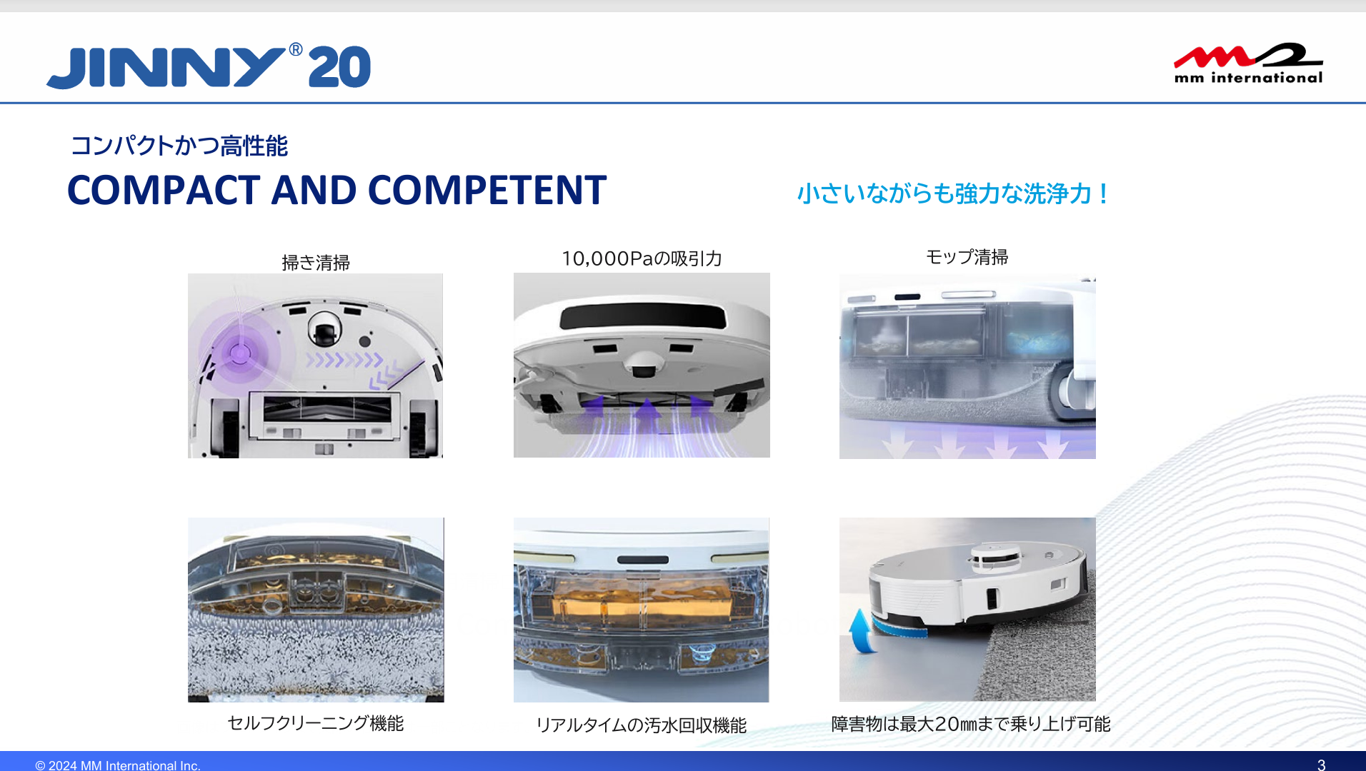 新しく最新型AI掃除ロボット【JINNY】を展示予定。