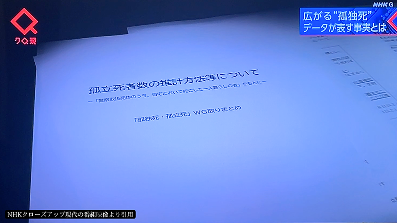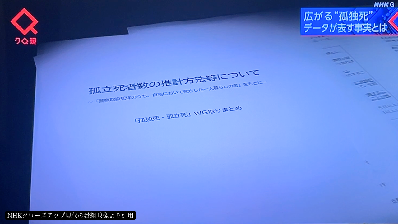 NHK『クローズアップ現代|小さな“孤独”が命を… 初の全国推計 孤独死・孤立死の実相』にて、