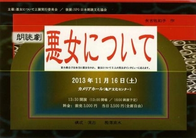 11月16日㈯ 東京亀戸 カメリアホールにおきまして、朗読劇 「悪女について」 が上演されました。