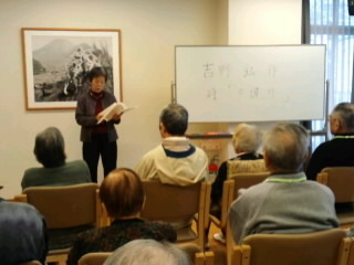 1月は大雪警報が出された18日㈪、26名の方が聞きにきて下さり、以下の5作品を朗読しました。