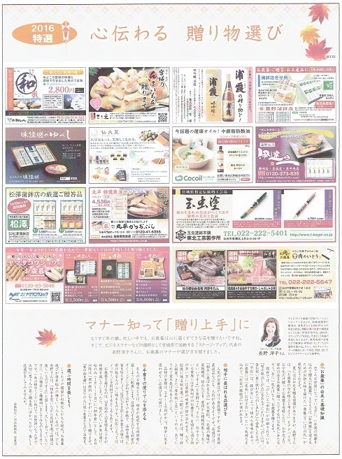 「お歳暮のマナー」 の記事が 11/18付の河北新報に掲載されました。