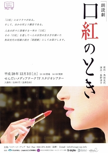 12月3日㈯ ステージ・アップ 主催の朗読劇 「口紅のとき」 を上演しました。