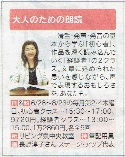 ★ 講座名 リビングカルチャー泉中央教室 『大人のための朗読』