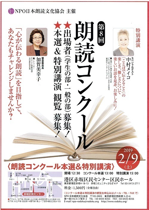 2月9日㈯ NPO日本朗読文化協会主催の 第8回 「朗読コンクール」 が開催されます。