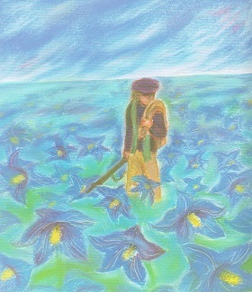 そこは広々とした野原で、一面青いききょうの花畑なのでした。