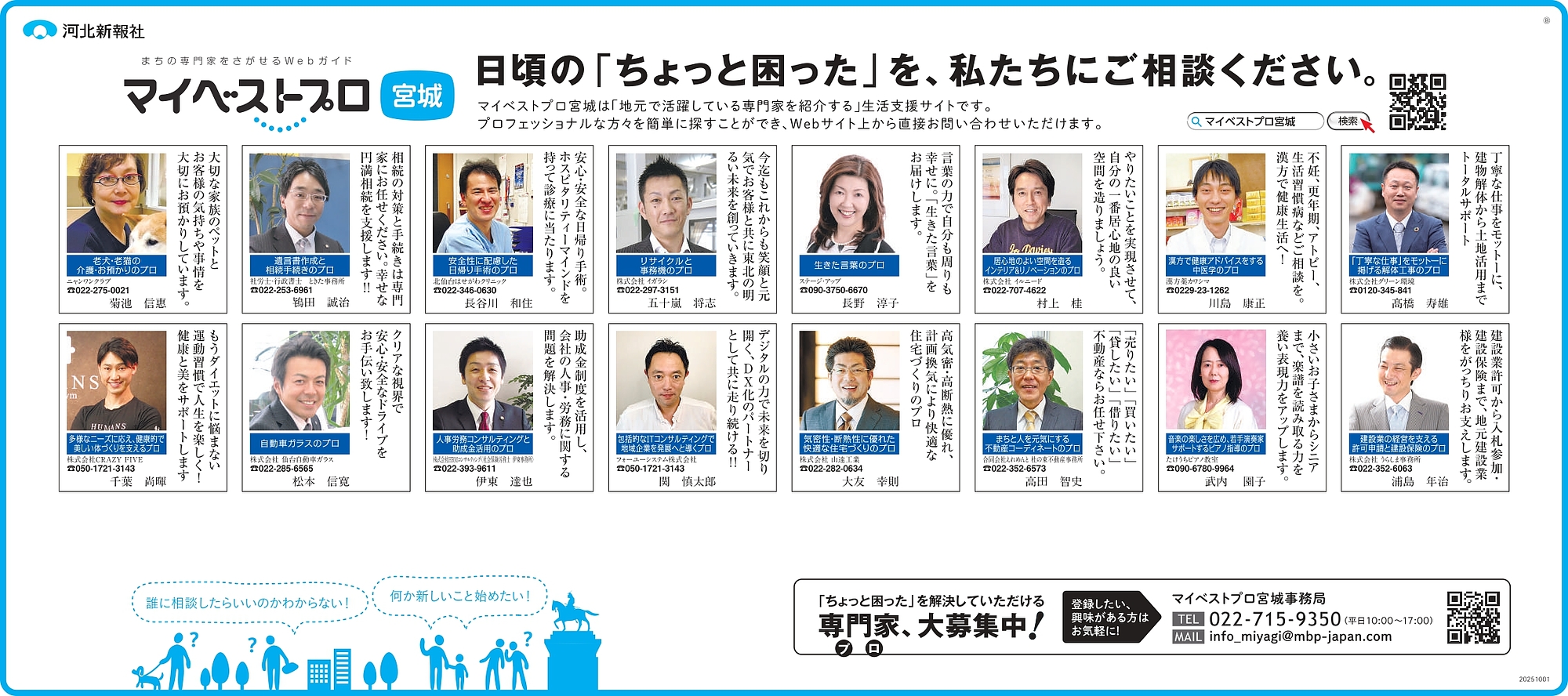 2025年10月26日(日)河北新報に「マイベストプロ宮城」の顔写真付き新聞広告が掲載されました!