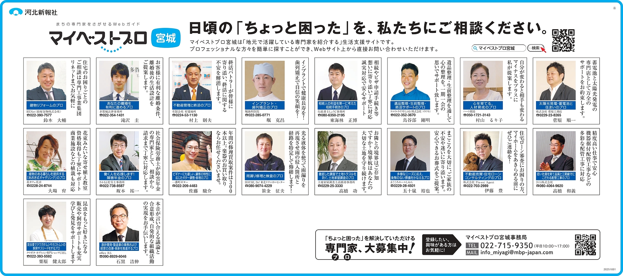 2026年2月22日(日)河北新報に「マイベストプロ宮城」顔写真広告掲載!