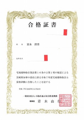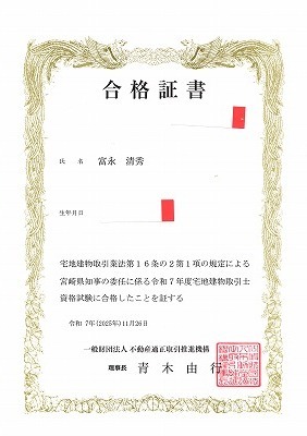 また、宅地建物取引士の試験に合格することができました。