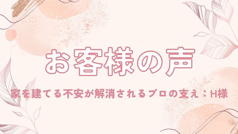 「家を建てる不安が解消されるプロの支え」~H様の声~