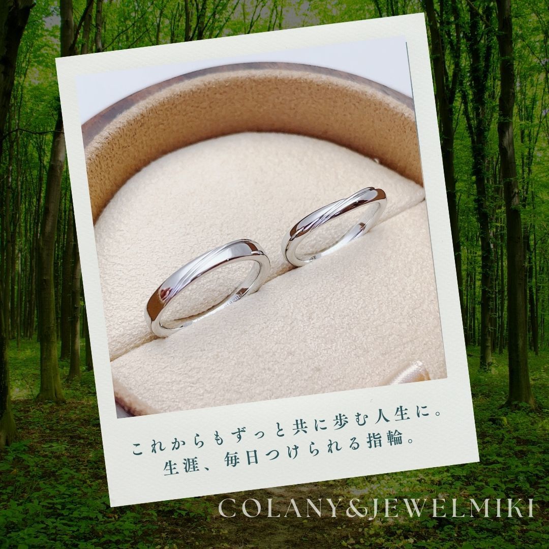 お二人で一緒に選んだ結婚指輪はブライダルリングブランド「COLANY(コラニー)」です。