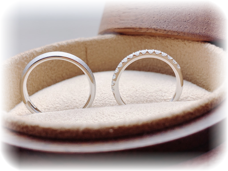 出来上がりをご覧になって「メンズの表面仕上げも、レディースのエタニティマリッジリングも綺麗すぎて大満足です!憧れのエタニティリングが、このような素晴らしい品質、そして安心のアフターメンテナンスを持ってずっとつけられると思うと、本当に幸せです。ありがとうございました」と、喜んで頂きました。