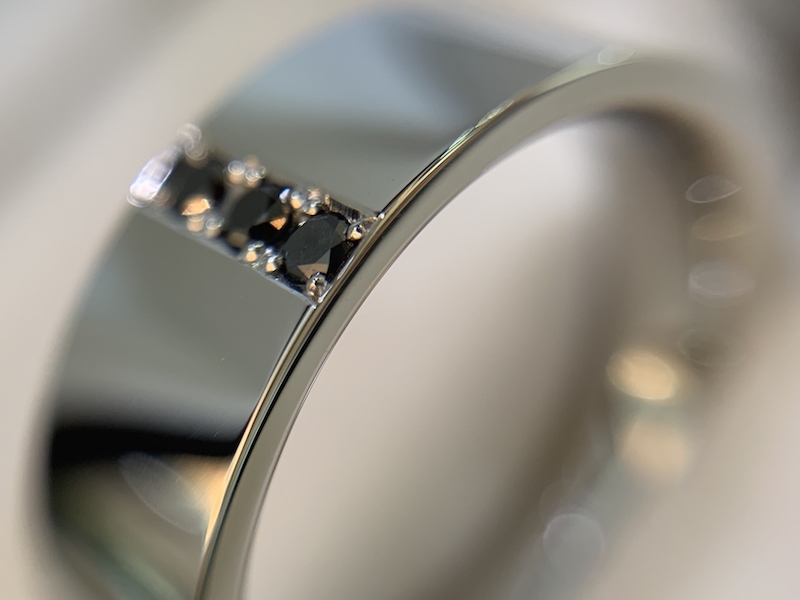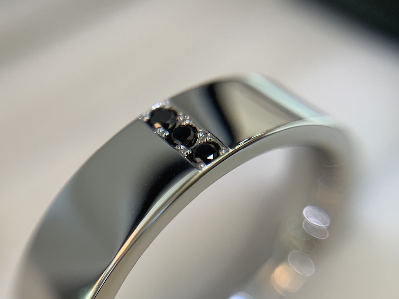 お互いにブラックダイヤモンド3石をセンターにセッティングするデザインで決定致しました。
