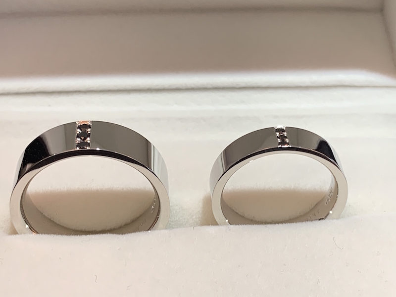 お二人とも出来上がりをご覧になって「これは既製品では売ってないね。オーダーメイドできるお店があって良かったよ。満足いく指輪を購入することができて良かった」と、喜んで頂きました。