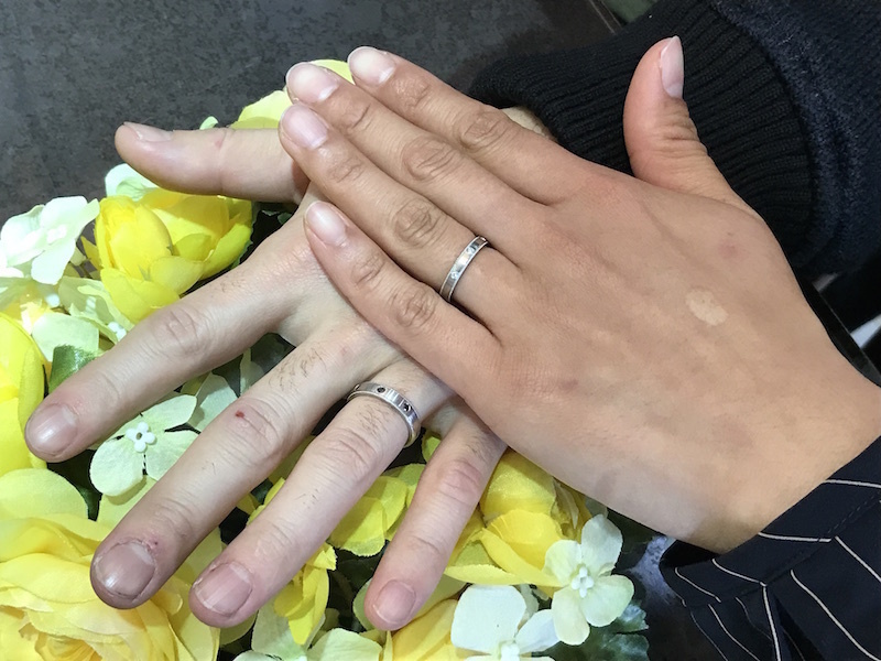 お二人とも出来上がりをご覧になって「すごくかっこいい結婚指輪をつくることができました。予想以上にかっこいいです。ありがとうございました」と、喜んで頂きました。