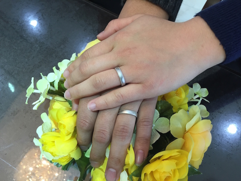 丈夫で変色リスクのないプラチナ鍛造製法オーダーメイドの結婚指輪であること、つや消しの美しさが決め手でした。