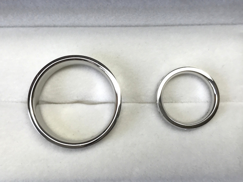 お二人とも出来上がりをご覧になって「おー!これはすごくいい!かっこいいですね。身近でこうやって結婚リングをオーダーメイドしてくれる専門店があって良かったです」と、喜んで頂きました。