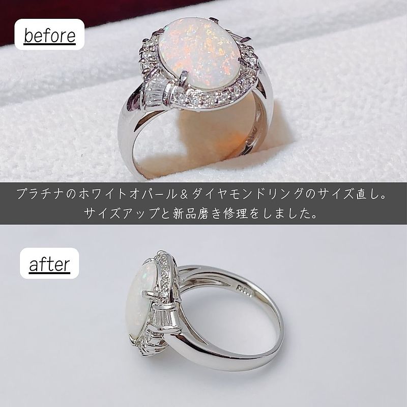 プラチナのホワイトオパール&ダイヤモンドリングのサイズ直し。サイズアップと新品磨き修理をしました。