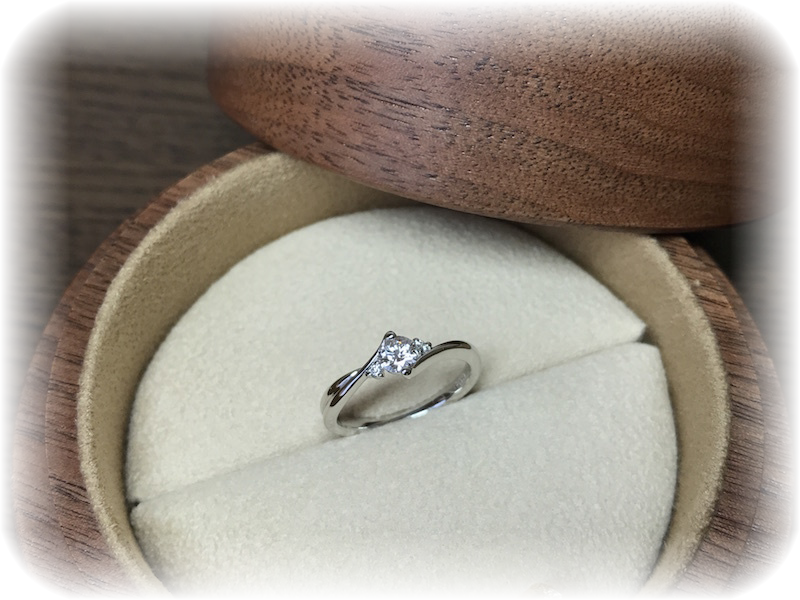 出来上がりをご覧になって「デザインもやっぱりこれが良かったですね。そしてダイヤモンドがとても綺麗でビックリしています。他のジュエリーショップで見たダイヤモンドとなんか輝きが違うように感じます。大満足です。彼女も喜んでくれると嬉しいな。いや、絶対に喜んでくれるはずです。ありがとうございました」と、喜んで頂きました。