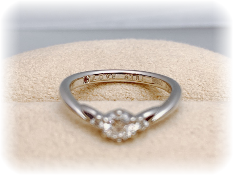 なかなか口ではいえないので、婚約指輪の内側に刻みました「LOVE」。