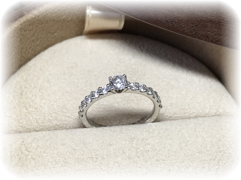 出来上がりをご覧になって「完璧です。望んでいたデザイン、輝きの婚約指輪です。探していた希望通りのエンゲージリングを購入することができてとても満足です。彼女が泣いて喜んでくれる姿が目に浮かびます!ありがとうございました」と、喜んで頂きました。