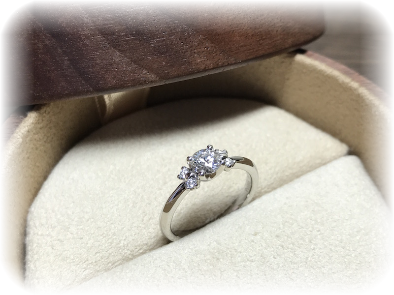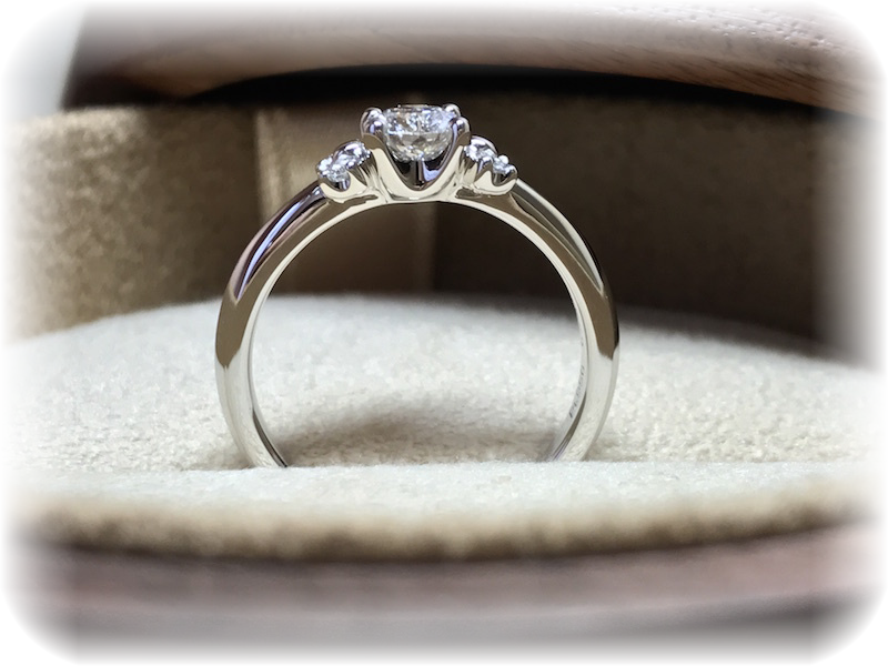 出来上がりをご覧になって「婚約指輪や結婚指輪について全く無知な私に、色々と詳しく教えてくれてありがとうございました。おかげで期待以上の婚約指輪を購入することができました。結婚指輪の時もまた必ず相談に来ますね。まずはプロポーズをちゃんとやってから彼女を連れてきますね」と、喜んで頂きました。