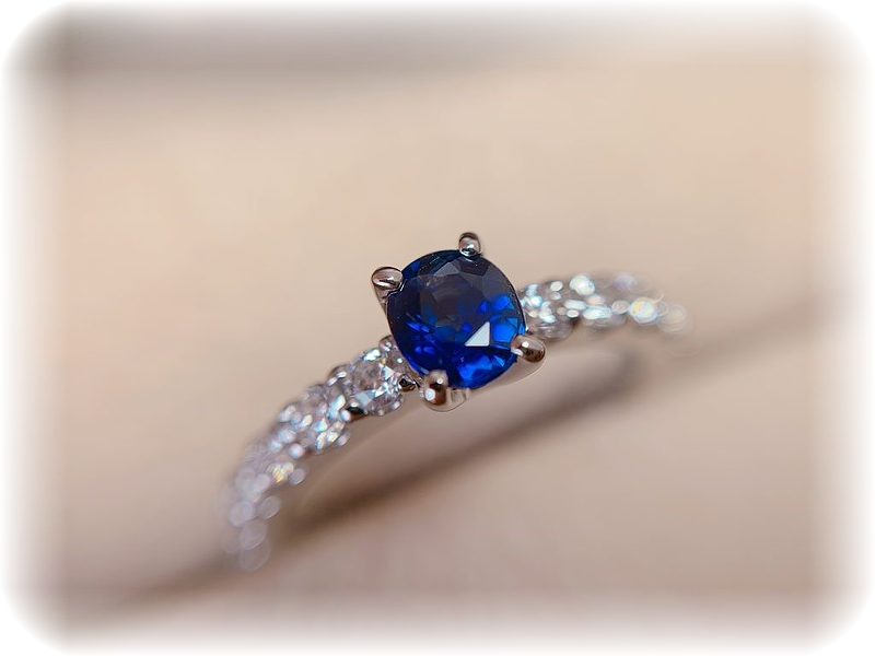 コラニーのエンゲージリング「カサブランカ」をアレンジしてリメイクしたこの婚約指輪、とてもキレイなサファイヤの婚約指輪となりました。デザインはエタニティタイプのデザインです。