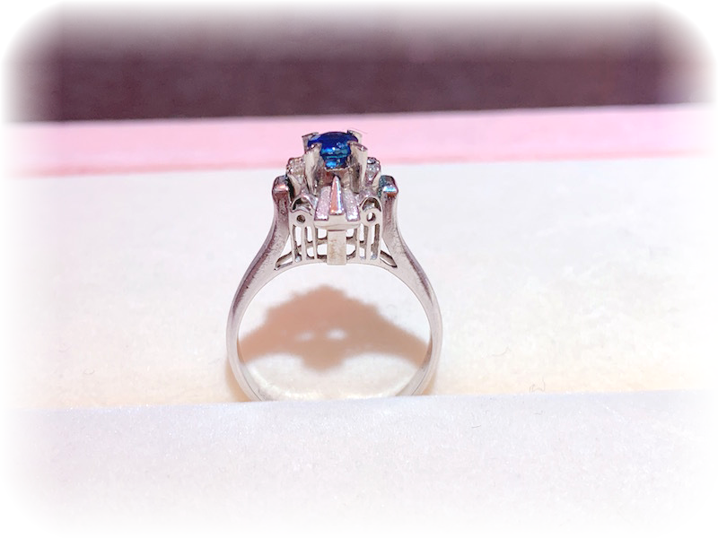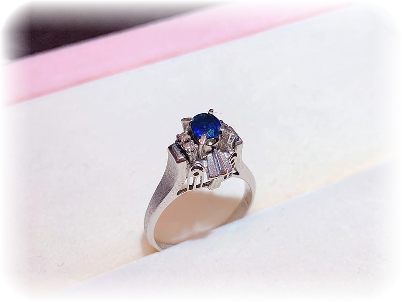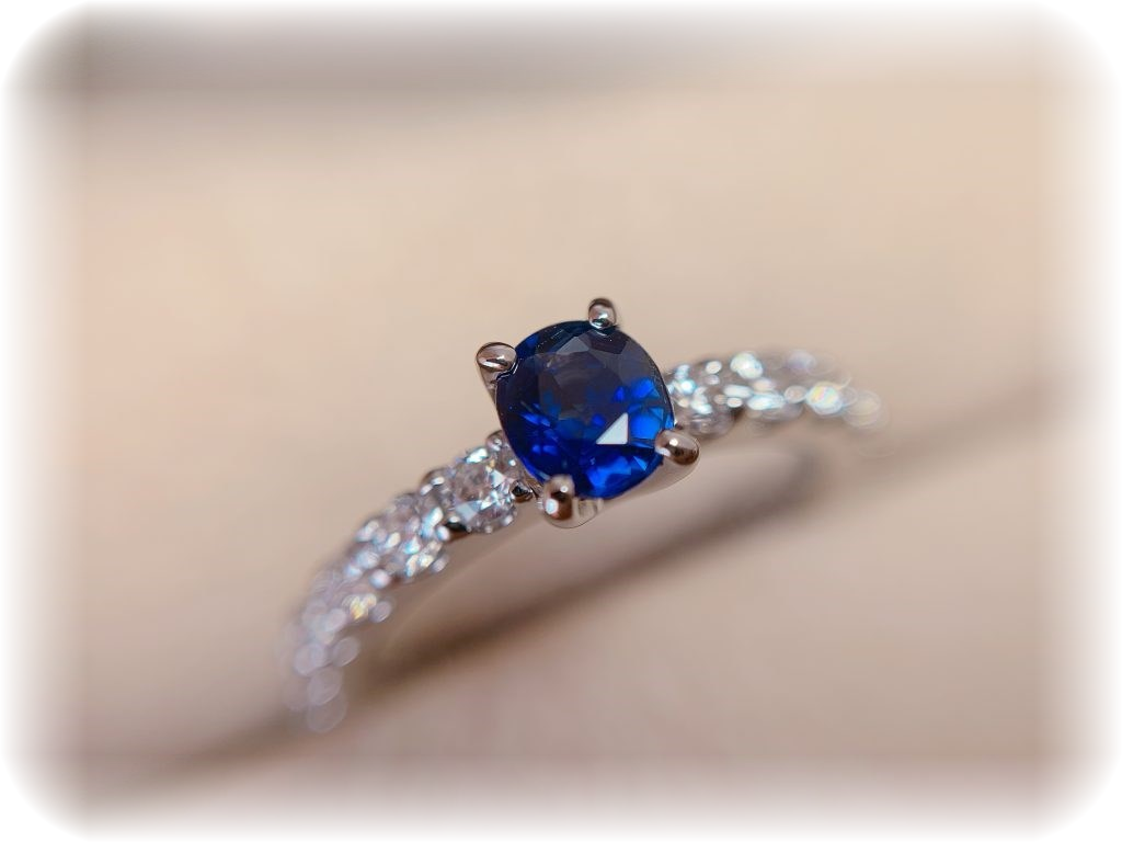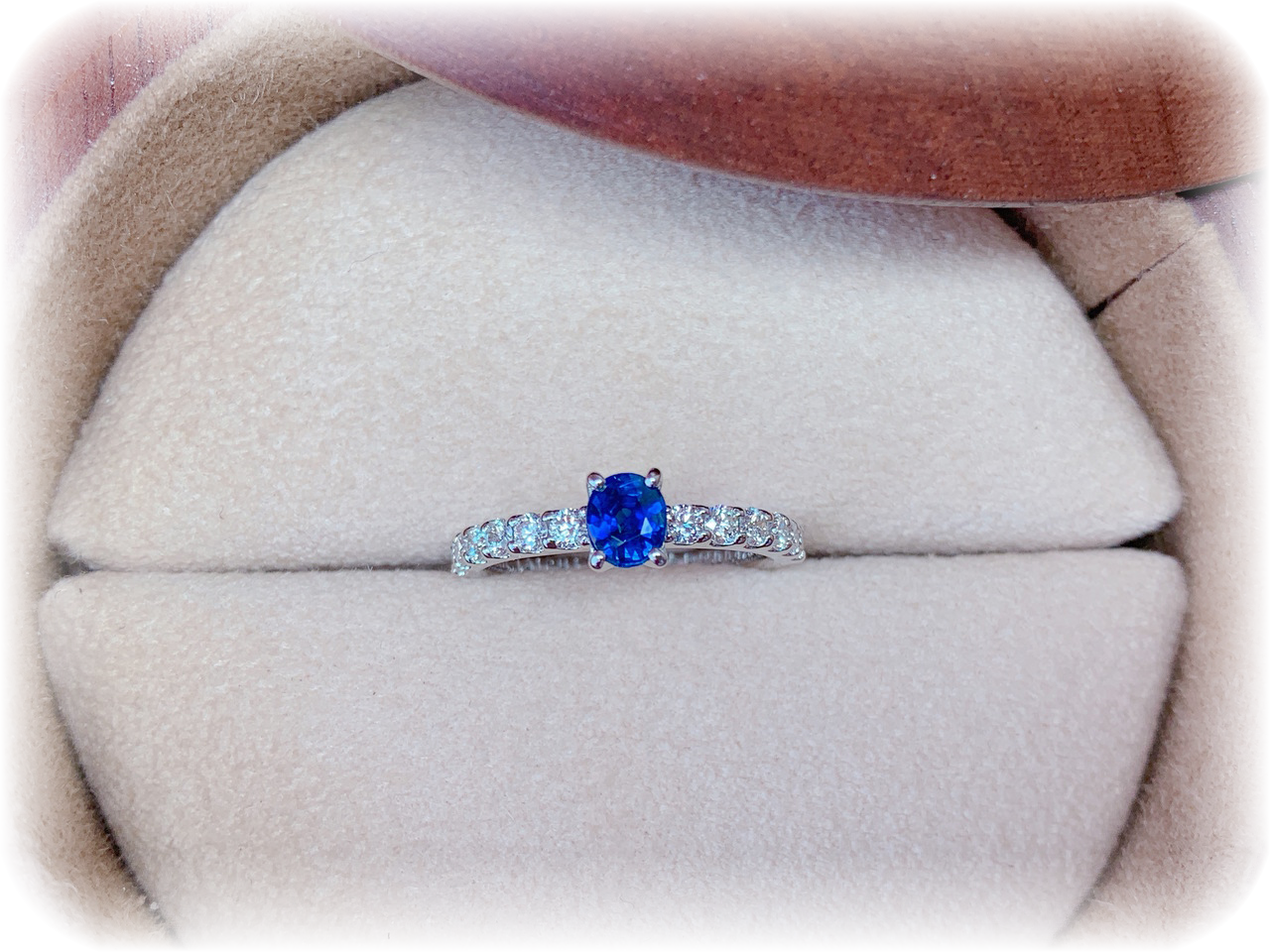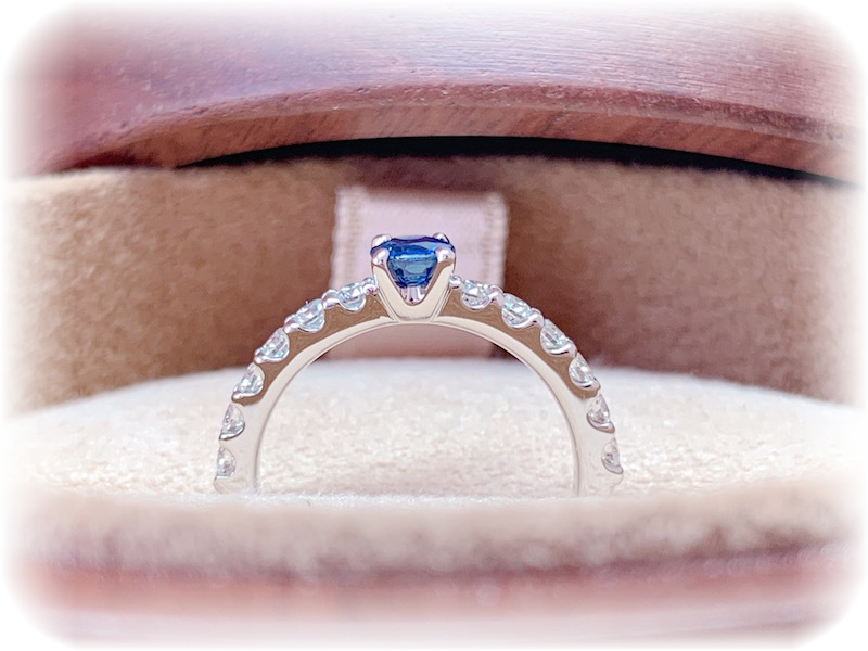 出来上がりをご覧になって「なんて素晴らしいサファイアエンゲージリングなんでしょう。驚きました。本当に綺麗で美しいです。エタニティデザインも完璧で、期待以上の出来栄えに感激しています。母もまさか自分の指輪がこのような素敵な指輪に生まれ変わったなんて想像もつかないと思います。本当にありがとうございました」と、大変喜んで頂きました。