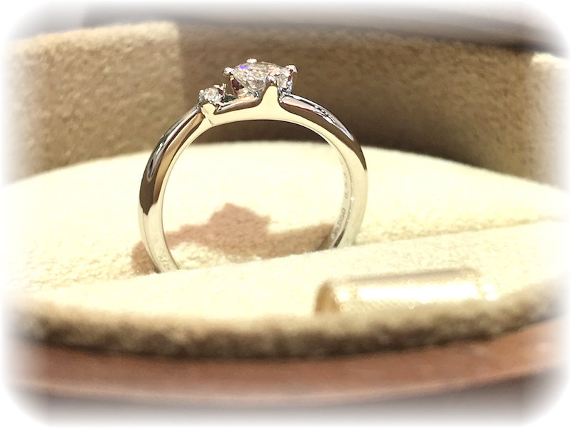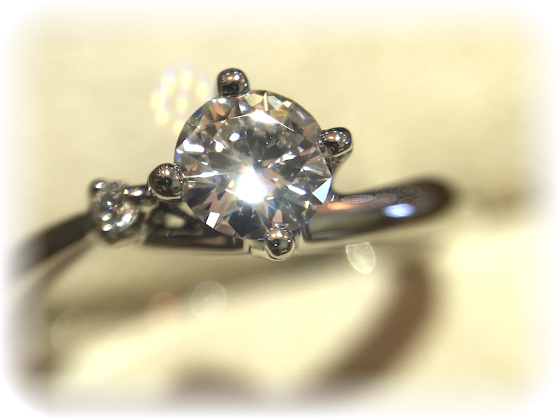 特に「輝くダイヤモンドが欲しい」と言われましたので、オーナー自慢のダイヤモンドをご覧になって頂きました。そしてその輝きに魅了されてご成約頂きました。
