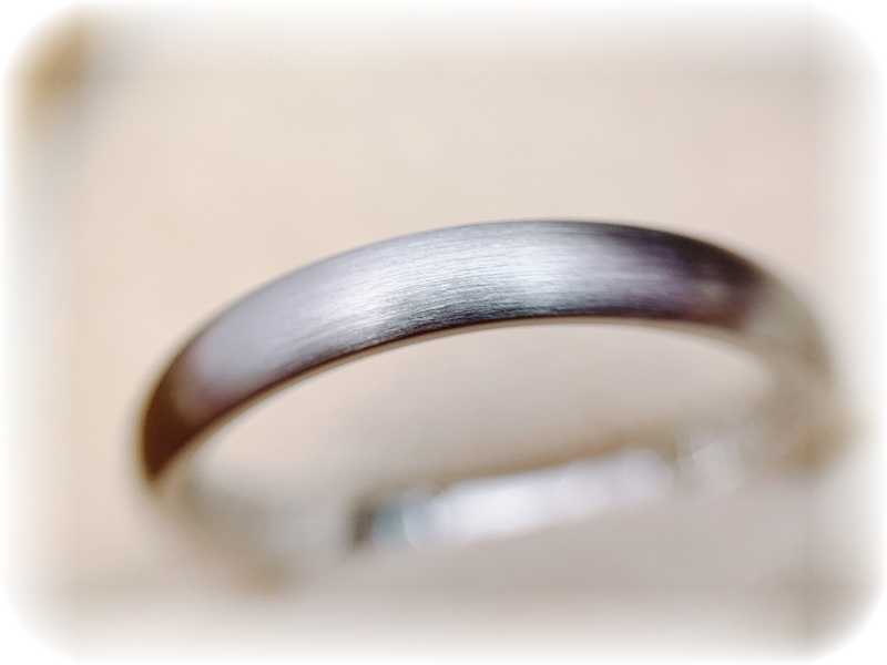 メンズマリッジリングのモミジは、表面をサティーナ加工(つや消し)して、落ち着いた雰囲気のリングとなりました。