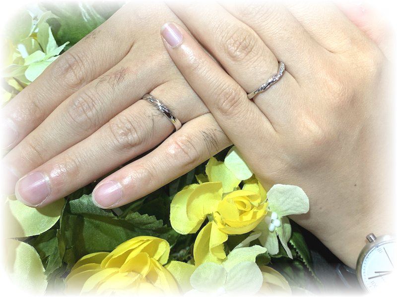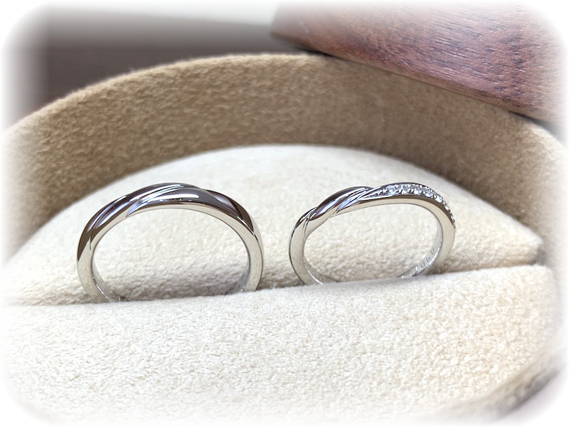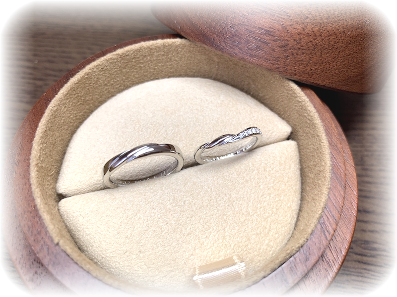 出来上がりをご覧になって「婚約指輪と結婚指輪の2本セット重ねづけがしたかったんです。とてもつけやすいつけ心地だし、デザインも素敵でいいですね!」と大喜びでした。