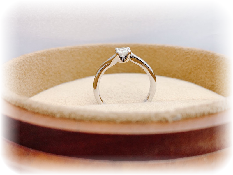 お母様のダイヤモンドを鑑定して、0.26カラットの綺麗なダイヤモンドでした。そのダイヤモンドを彼女が気に入った「UFUFU」にセッティングしました。