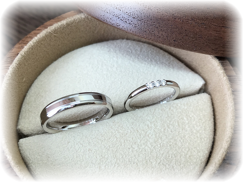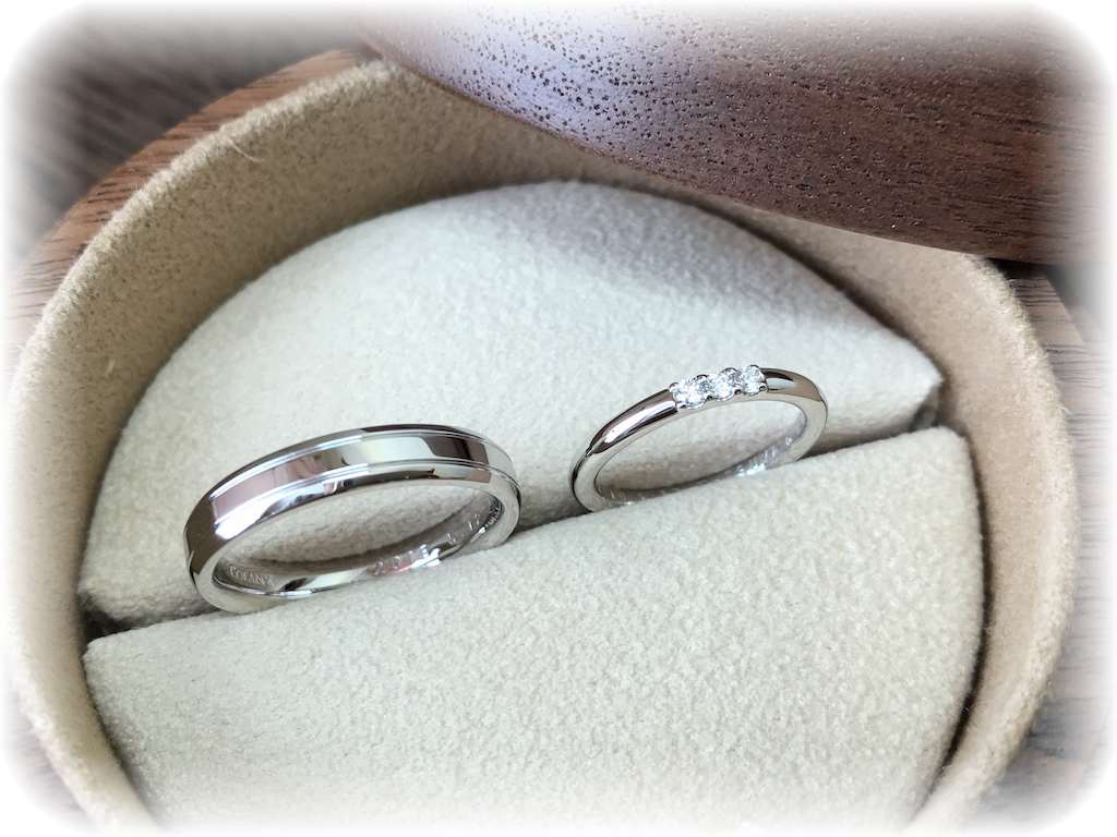 出来上がりをご覧になって「ちょっと金属アレルギーっぽい感じの私ですが、プラチナ950の素材なら被れにくいとご紹介してもらいました。金属アレルギーと言っても色々あるんですね。私の場合は、それほどひどくありませんでしたが、相談に乗ってもらって良かったです。結婚指輪はずっとつけていたいので、その辺のアレルギーも考慮されたコラニーのリングで試してみます」と、喜んで頂きました。