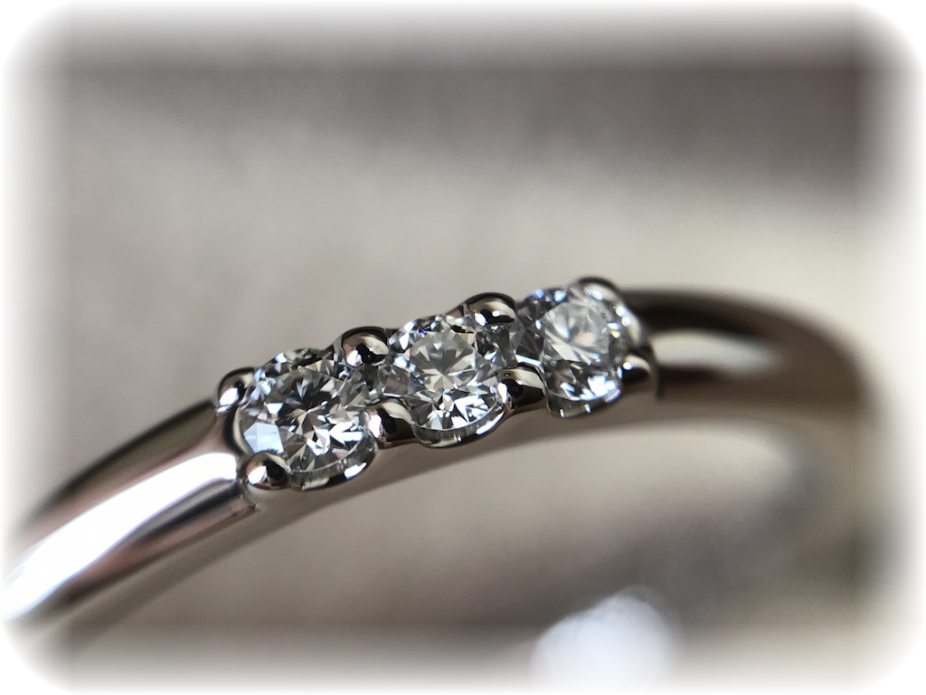 「ダイヤモンドの婚約指輪と結婚指輪の3点セットを購入検討しています。彼女がちょっと金属アレルギーっぽい疑いがあるようなんですが、ジュエルミキさんで扱っている指輪は、そんな彼女でも大丈夫ですか?」と、お二人でご来店されました。