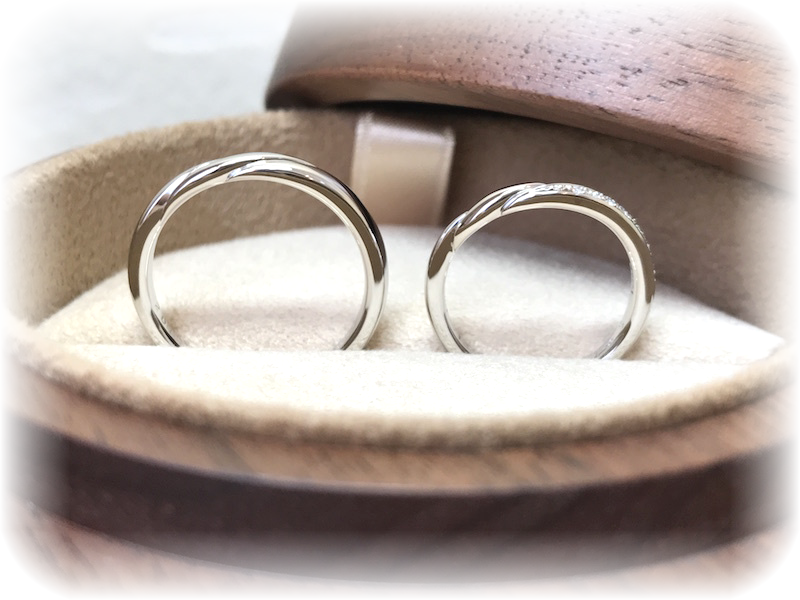 「二人とも、指の関節が凸凹していてなかなかジャストフィットな結婚指輪に出会えないでいます。こちらの結婚指輪は、私たちのような指におすすめの結婚指輪はありますか」と、来店予約でまずはご相談されてから、お二人でご来店されました。