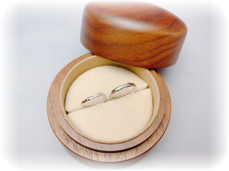 出来上がりをご覧になって「一番人気だけあって、デザインもとても素晴らしいですね。私たちもこのデザインがとても気に入りました。結婚指輪を選ぶときは、デザインだけでなく、ブランドが持っている特長をしっかり比較することをジュエルミキさんに教えてもらったので、失敗のない結婚指輪選びが出来ました。ありがとうございました」と、喜んで頂きました。