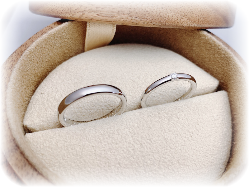 「私たちは事務系で手も指も細いので、シンプルで細い結婚指輪が似合うと思うんです。でもあまり細い指輪はずっとつけられるか不安です。細くてもずっとつけられる結婚指輪を探しています」と、お二人でご来店でした。