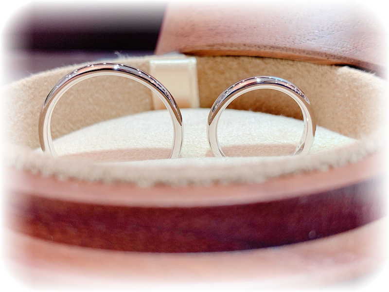 「ジュエルミキさんに来るまでに5件のジュエリーショップに行って、シンプルな甲丸の結婚指輪を見てきましたが、どこも同じようなものでした。どこで買っても同じなんでしょうか?」と、ジュエルミキの来店予約をされて、ご相談でお二人でご来店されました。