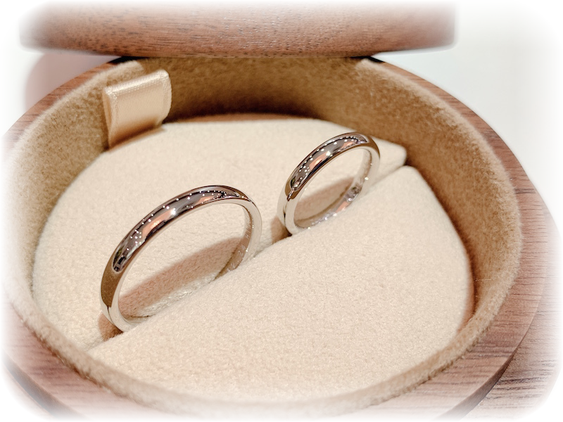 「ジュエルミキさんに来るまでに5件のジュエリーショップに行って、シンプルな甲丸の結婚指輪を見てきましたが、どこも同じようなものでした。どこで買っても同じなんでしょうか?」と、ジュエルミキの来店予約をされて、ご相談でお二人でご来店されました。