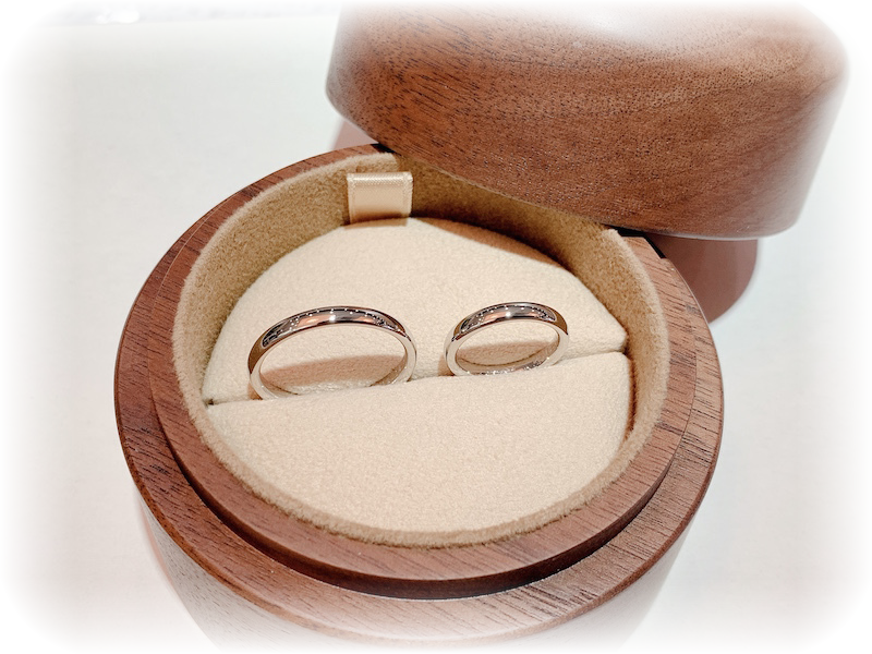 出来上がりをご覧になって「やっぱりお店やブランドによって違うんですね。最初につけて、つけ心地の良さの違いがはっきりわかりました。どうせつけるならずっとつけたいし、つけるならつけ心地がいい指輪が良いですからね」と、コラニーのモミジを選んでとても喜んで頂きました。