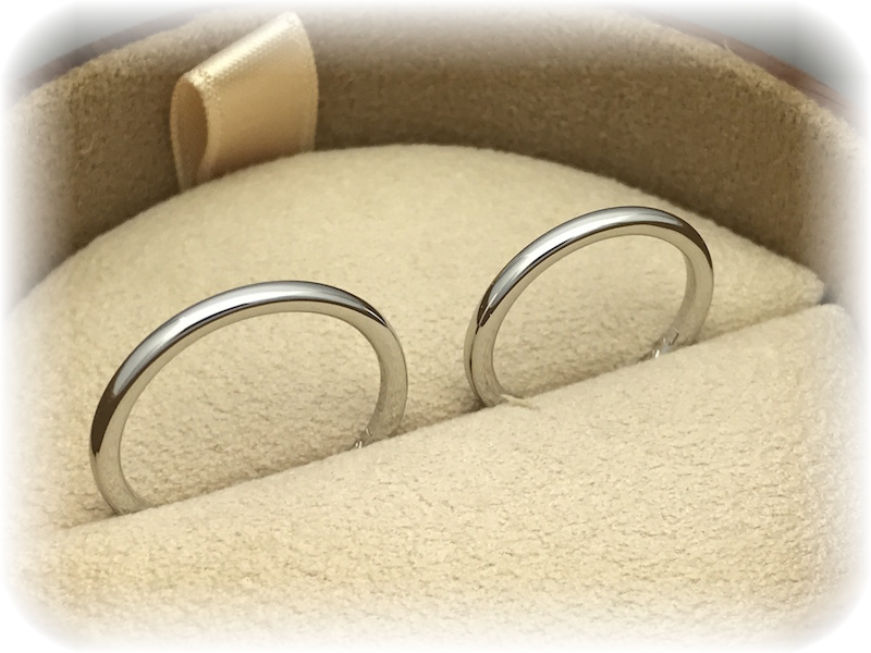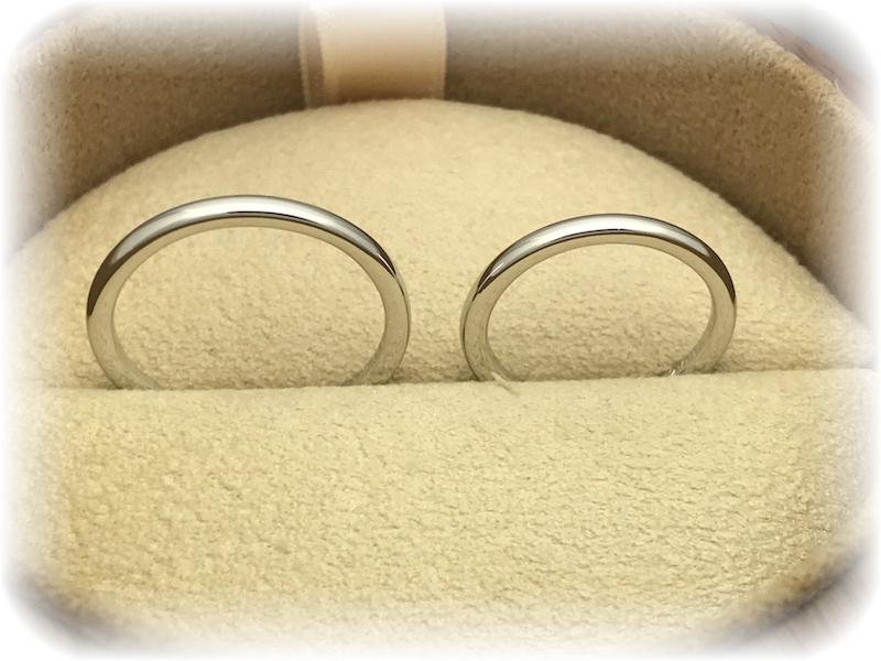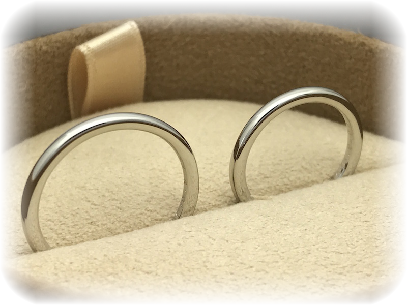 「本当に、何もついてない、曲がったりV字になっていたり、凹凸があったりは全て不要です。何もないシンンプルな結婚指輪を探しています。」とお二人でご来店されました。