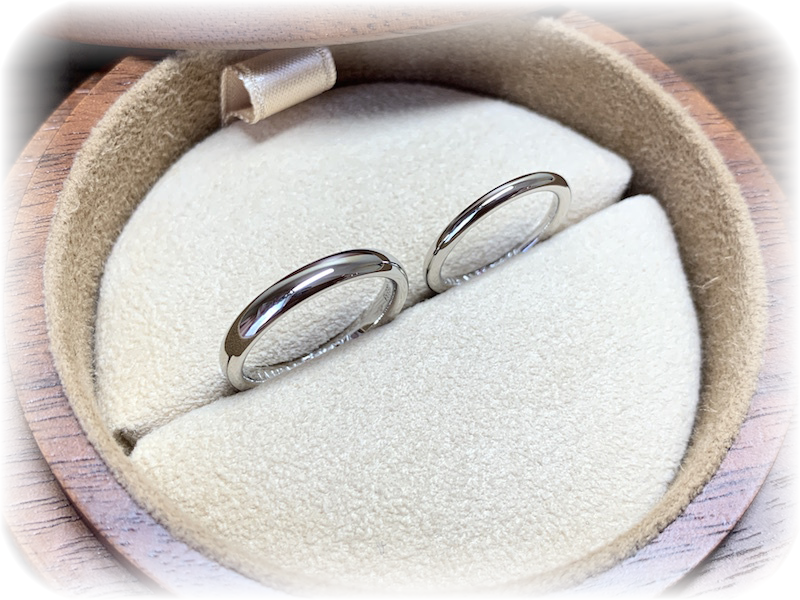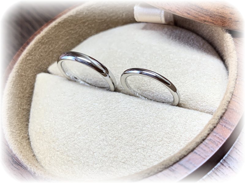 「何もついていないデザイン、まっすぐで本当にシンプルなワッカみたいな結婚リングにしようと考えています。他の宝石店でも色々なブランドをみてきました。ジュエルミキさんのところの結婚指輪もみせてください」と、お二人でご来店されました。