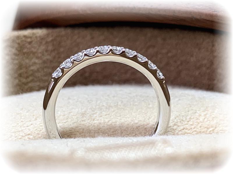 ダイヤモンドを10石、エタニティデザインでオーダーメイドしてはいかがですか。とご提案し、COLANYモミジシリーズのエタニティデザインで、ダイヤモンドを10石にカスタマイズアレンジして製作することになりました。