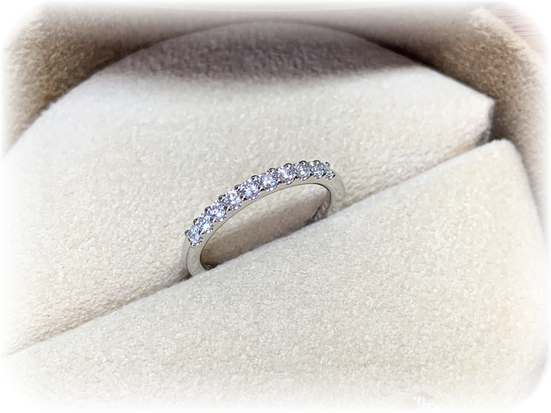結婚10周年記念にスイートテンダイヤモンド。ダイヤモンド10石でオーダーメイドした、コラニーのハーフエタニティリングです。