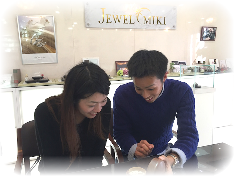 「知人の結婚指輪は購入してから1年足らずで変形してしまったそうです。それを樹いて私たちはそのような結婚指輪ではなく、ちゃんとした結婚指輪がほしいと思っています」と、お二人でご来店されました。