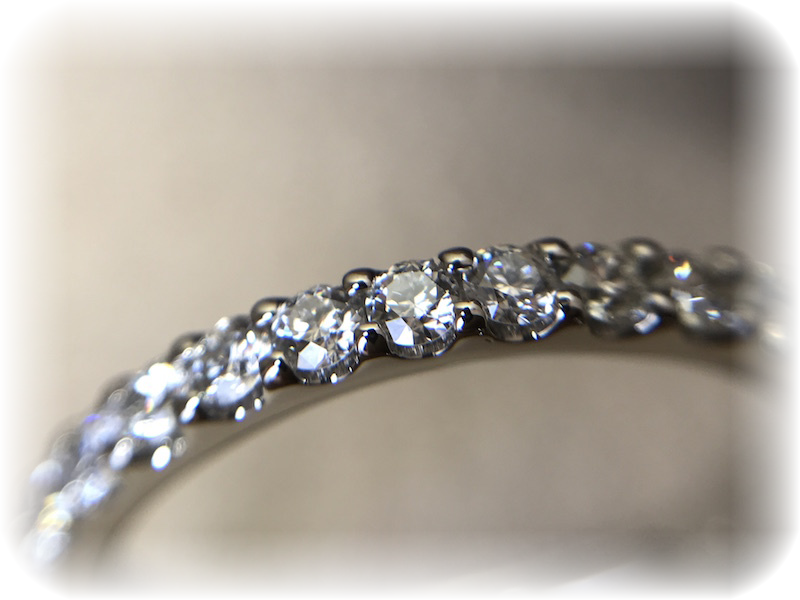 出来上がりをご覧になって「欲しかったエタニティデザインのマリッジリング、想像していた以上に綺麗な指輪に出会うことが出来ました。本当にコラニーのエタニティリングは綺麗ですね。感動しています。ありがとうございました」と、喜んで頂きました。