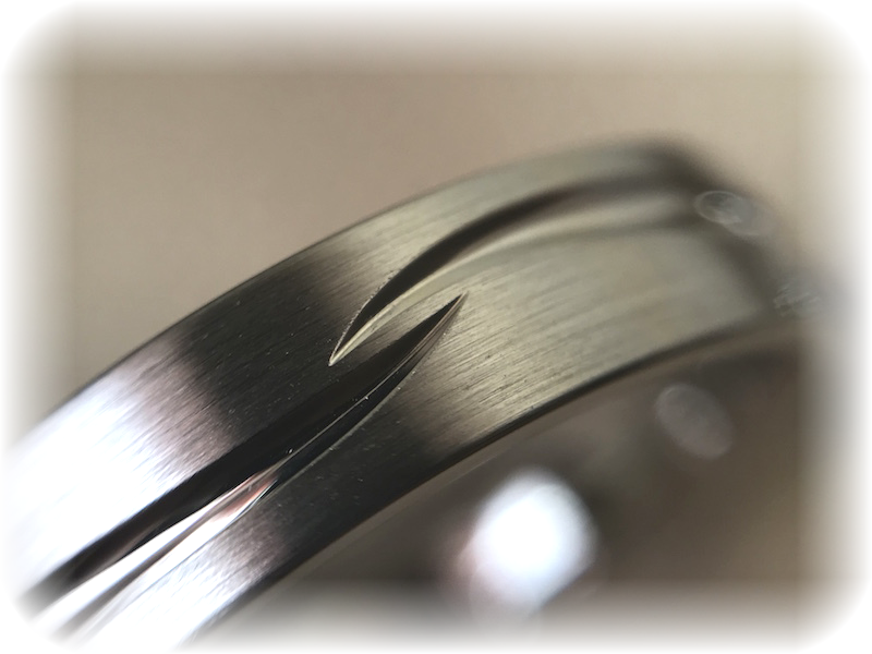 シンプルですっきりと見せるツルのデザインは非常に難しい仕上げを要し、微妙な曲線となめらかさ、柔らかさを出すために、7種類もの道具を使って磨き上げています。