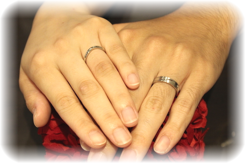 結婚指輪の二人のデザイン、抜群のつけ心地のよさ、サイズ直しと新品磨きが50年無料で保証されているところ。が決め手でした。