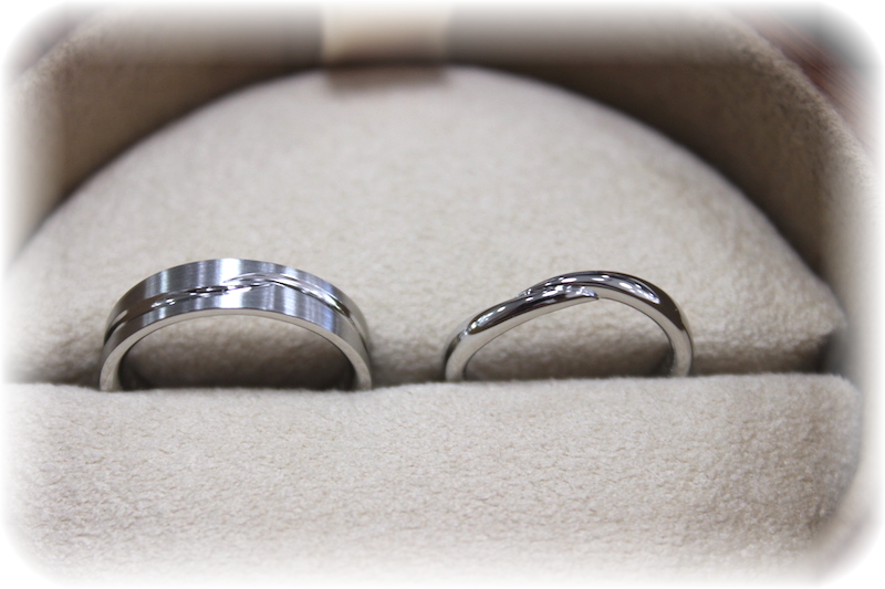レディースのデザインをメンズリングに刻み込んだ、一体感、ペア感、2本で1つの結婚指輪。