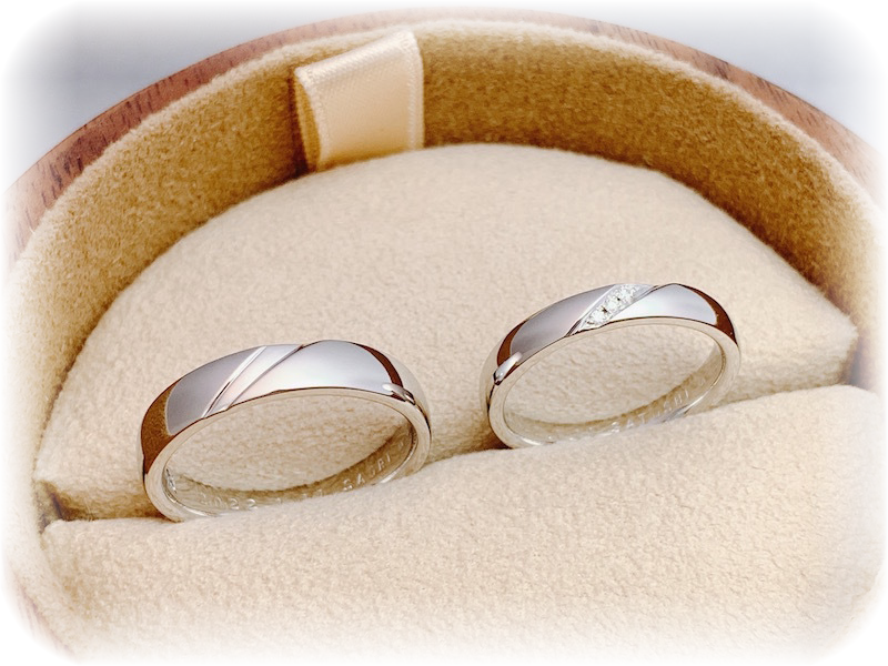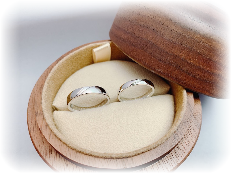 出来上がりをお二人でご覧になって「この指輪は本当につけ心地が気持ちいいですね。いくつかのブランドやショップを見て回りましたが、これほど気持ちのいいつけ心地の指輪はなかったです。この結婚指輪に決めて正解でした。ありがとうございました」と、喜んで頂きました。